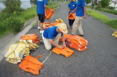 Aライフジャケットを受け取ったら係員にライフジャケットの着用と服装の確認と注意事項