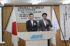 | JCIミッション並びにJCIビジョン唱和 橋嘉郎君 講座の様子 | |